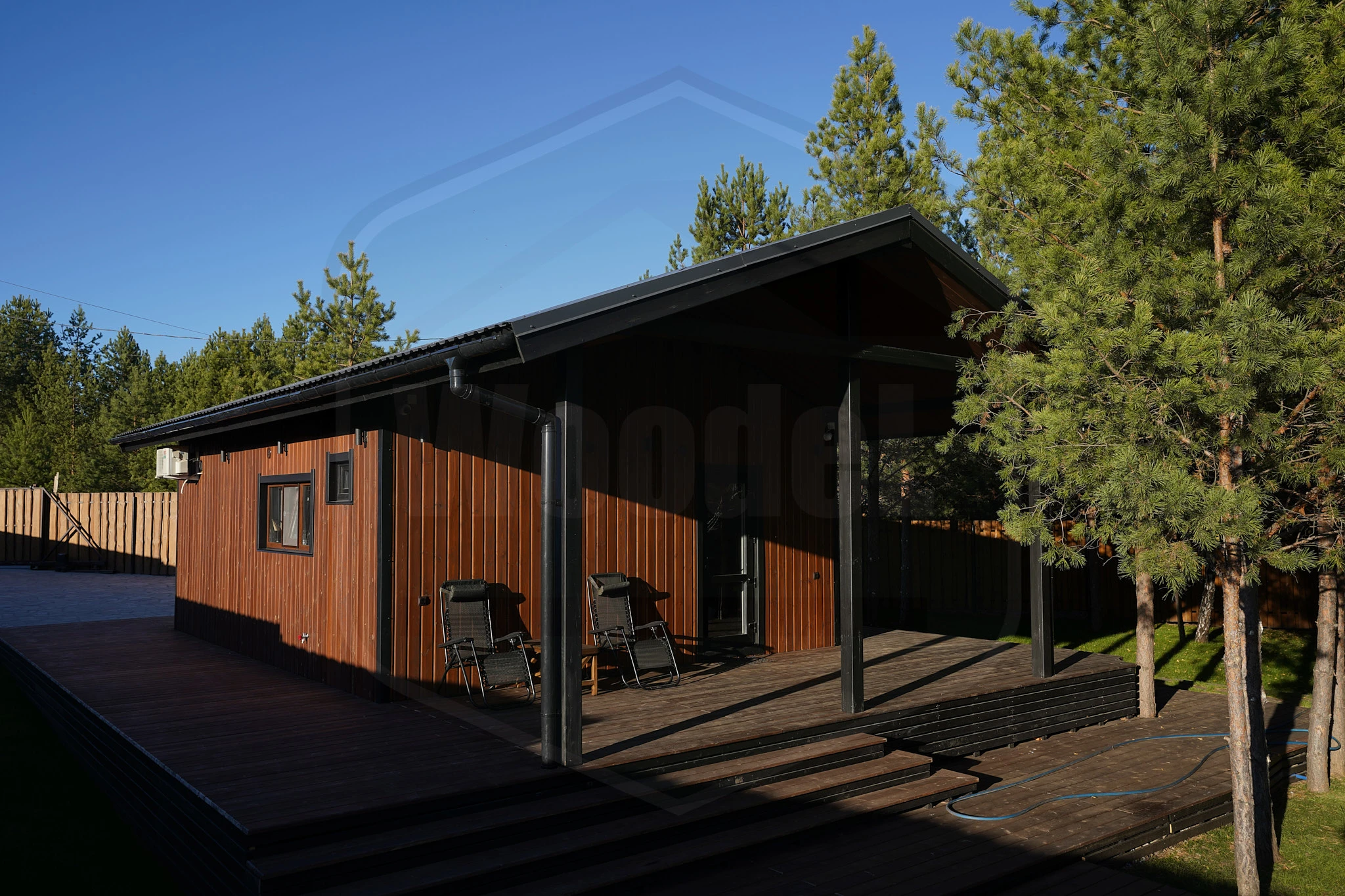 Все наши дома поставляются с готовой внутренней и внешней отделкой, электрикой, сантехникой и панорамными окнами. Вам остается только поставить мебель и встречать первых гостей.