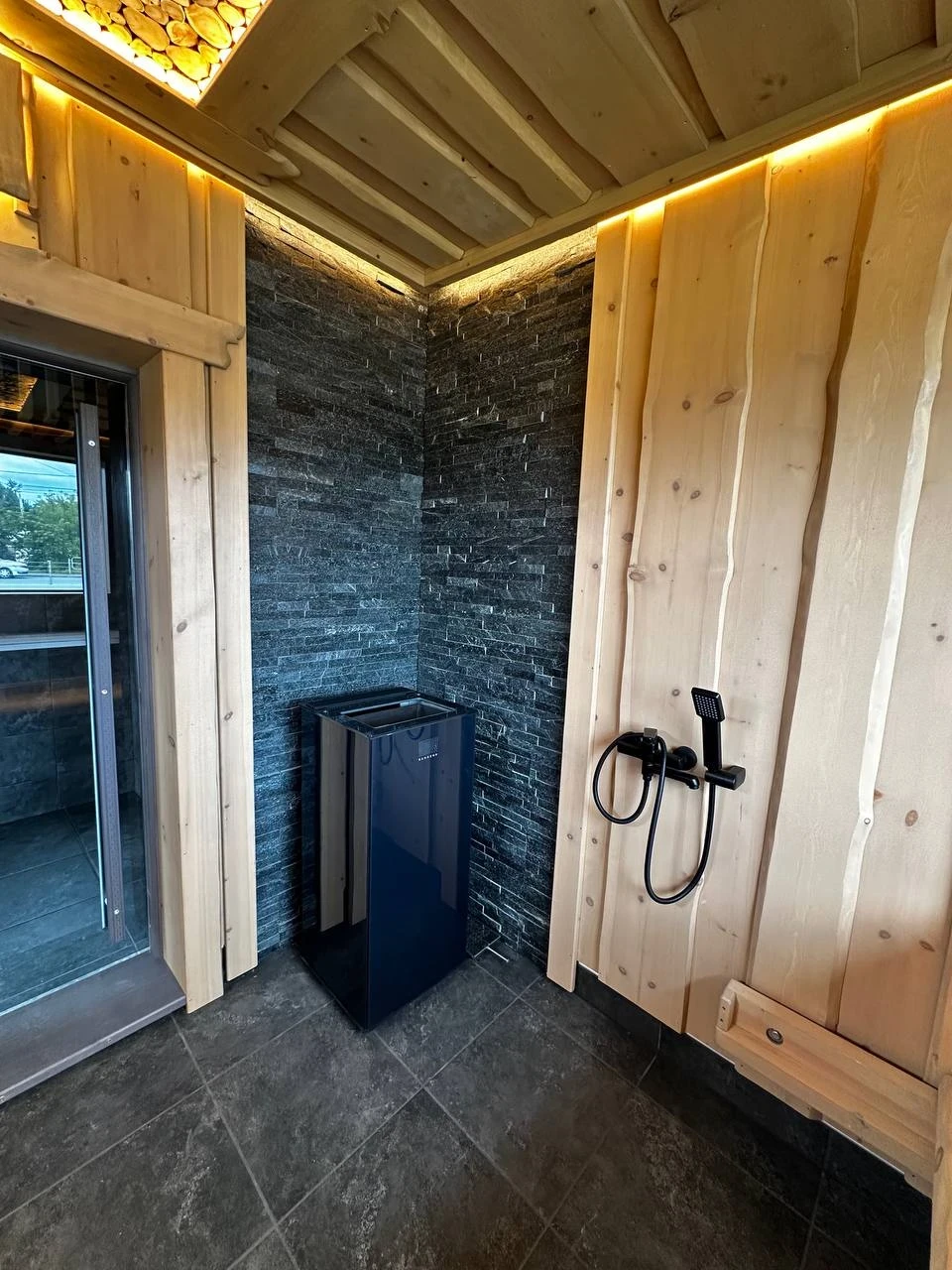 - Дополнительные удобства: Отдельный душ для ополаскивания прямо в парной и окна для залпового проветривания.