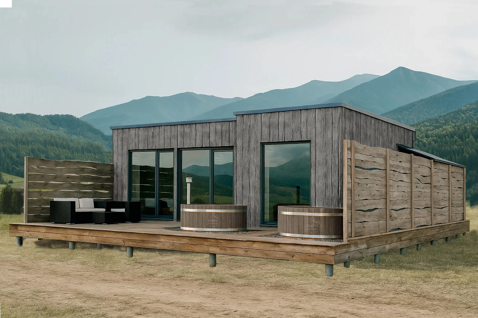 Модульный формат позволяет быстро запустить проект без долгого строительства и мокрых процессов на участке, а продуманная планировка обеспечивает комфортный отдых сразу для нескольких компаний гостей.