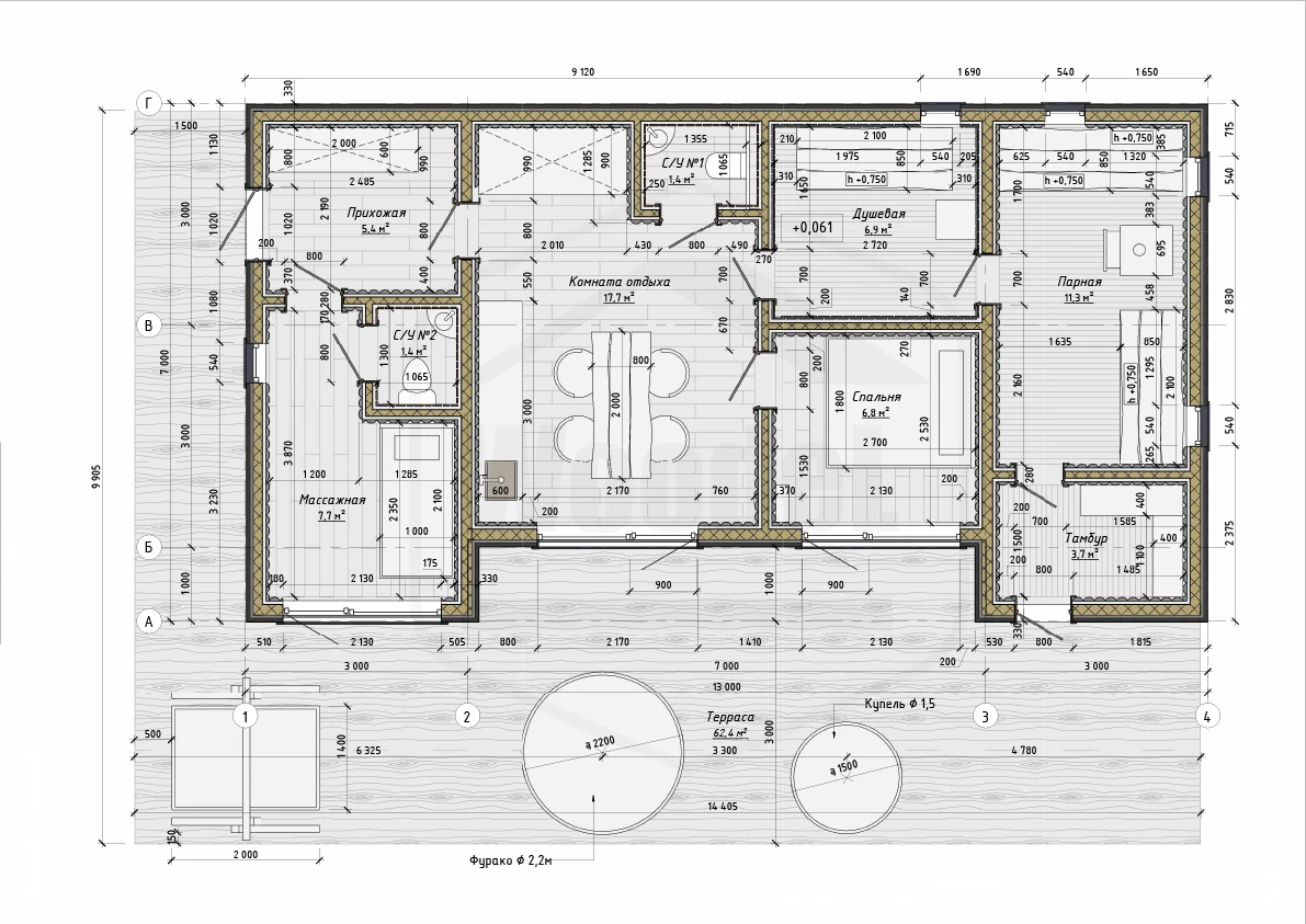 Баня Былина 95 - это современное модульное решение площадью 97 м² для коммерческого использования. Конструкция разработана специально для гостиниц, баз отдыха, санаториев и других объектов индустрии гостеприимства.