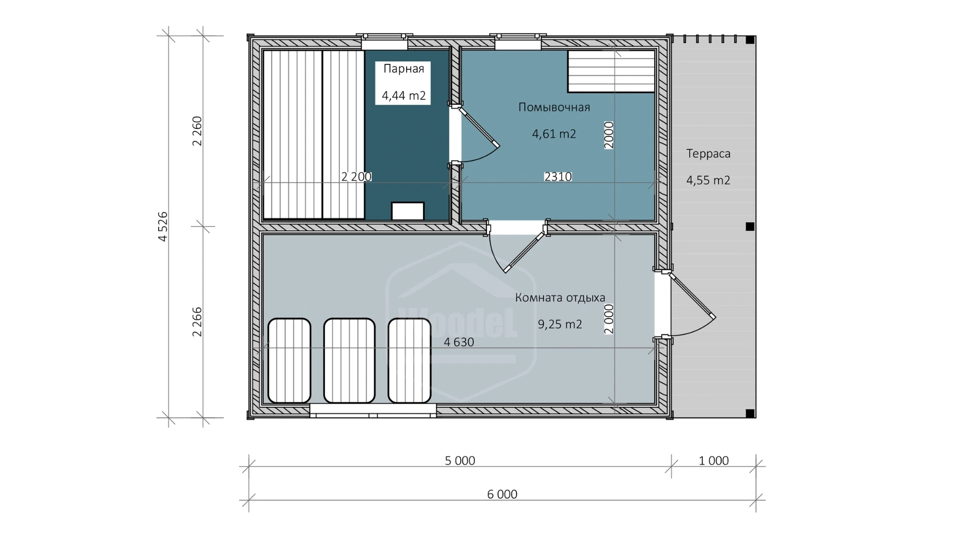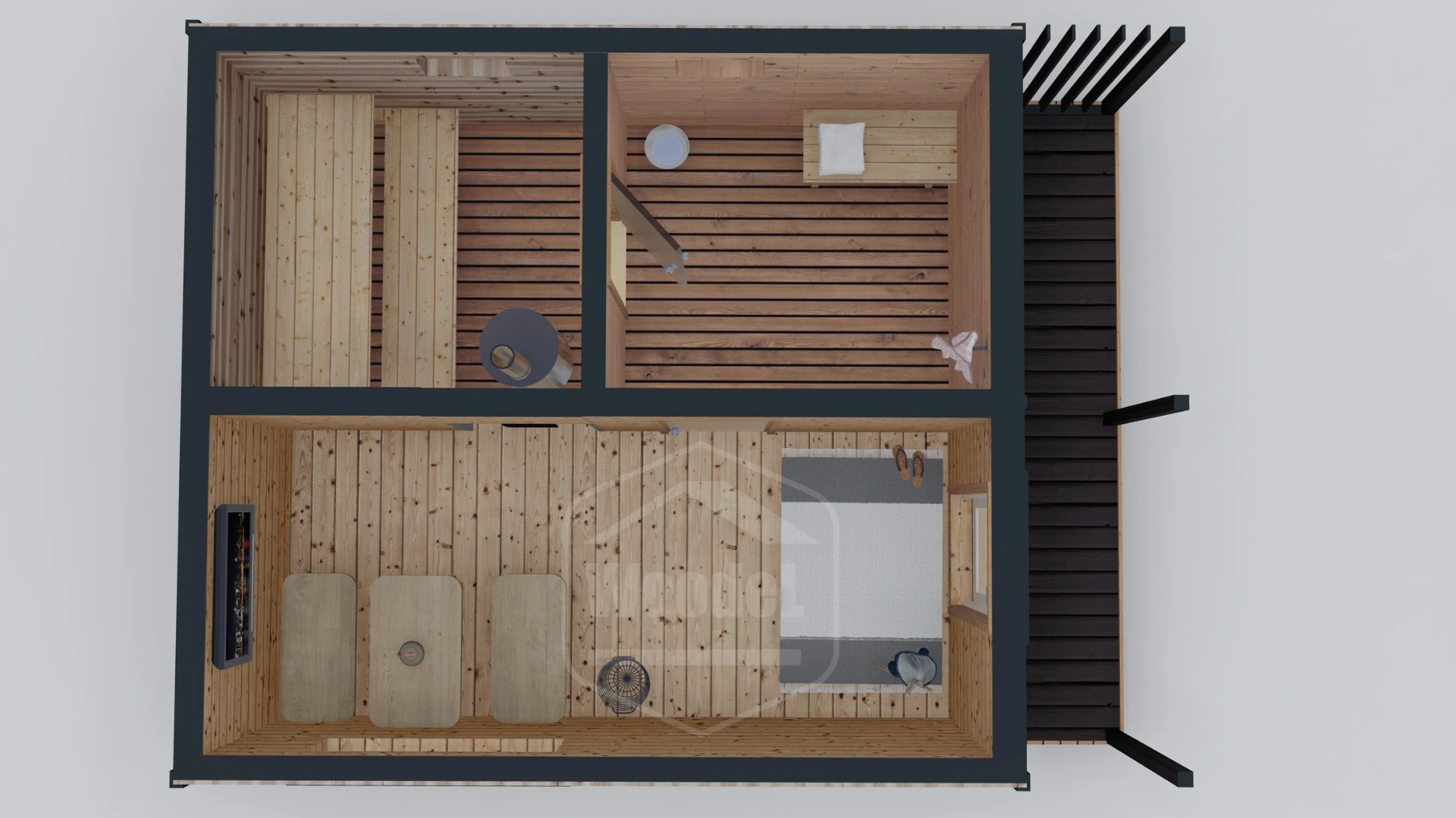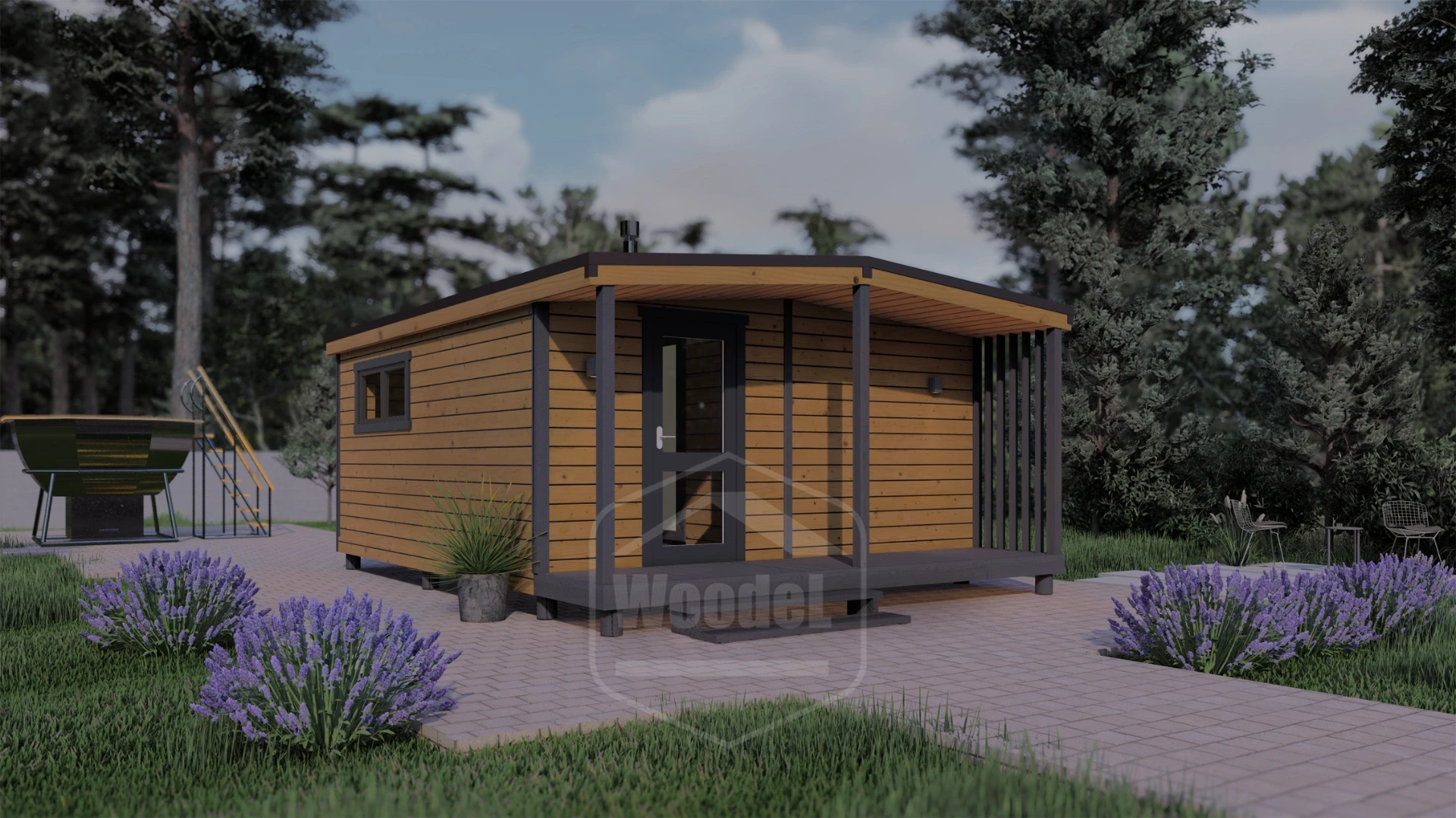 Баня Woodel HEAT 4.5x6 — это ваша золотая середина. Мы взяли самую популярную и функциональную планировку, добавили просторную террасу и “оживили” ее панорамным окном в парной. Это готовое SPA-пространство, которое станет центром притяжения на вашем участке.