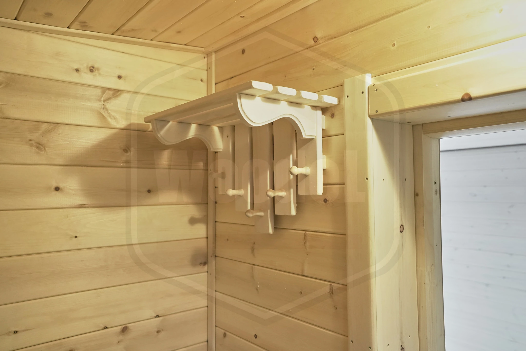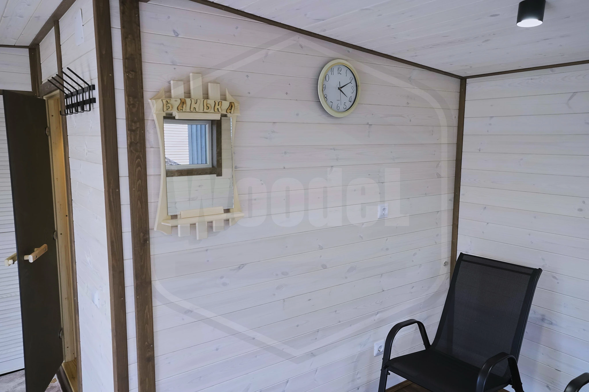 2. Светлая комната отдыха. Сердце вашей бани и место для душевных бесед. Большое окно наполняет ее светом, а площади достаточно для установки дивана, стола и даже небольшой кухонной зоны. Здесь комфортно переодеться, подготовиться к парению и расслабиться после.