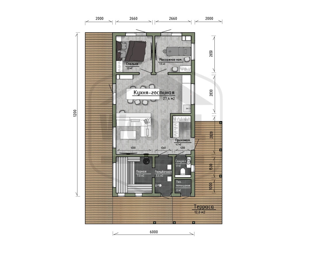 Банный комплекс 6х12 — это гибкая платформа. Мы можем адаптировать планировку, изменить отделочные материалы и учесть любые ваши пожелания, чтобы создать пространство, которое будет на 100% соответствовать вашему видению идеального отдыха.