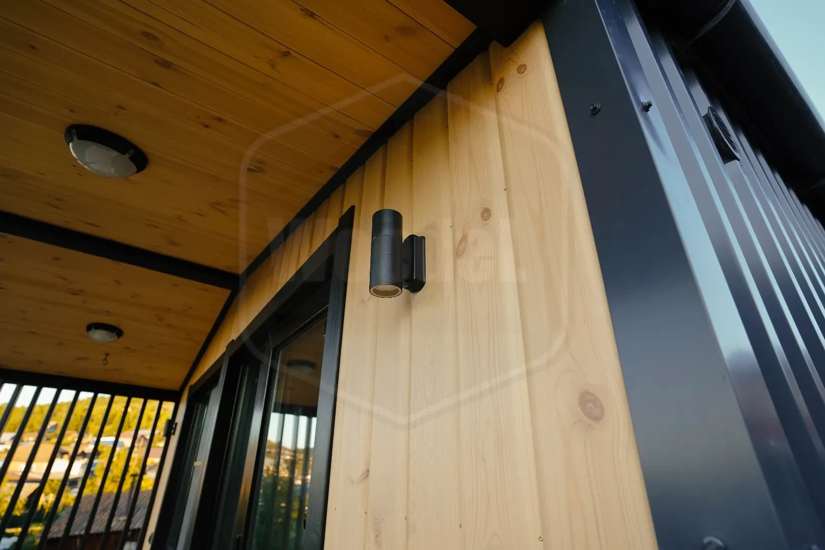 Вся электрика проведена скрытым способом. Мы используем кабель сечением 3x2.5 мм с самозатухающей оплеткой. Дополнительно весь кабель идет в гофре, которая также соответствует всем пожарным нормативам. Вопросам противопожарной безопасности мы всегда уделяем особое внимание. Используются негорючие материалы, а также все дерево, из которого изготавливается баня, обрабатывается пропитками и специальными составами, препятствующими возгоранию.