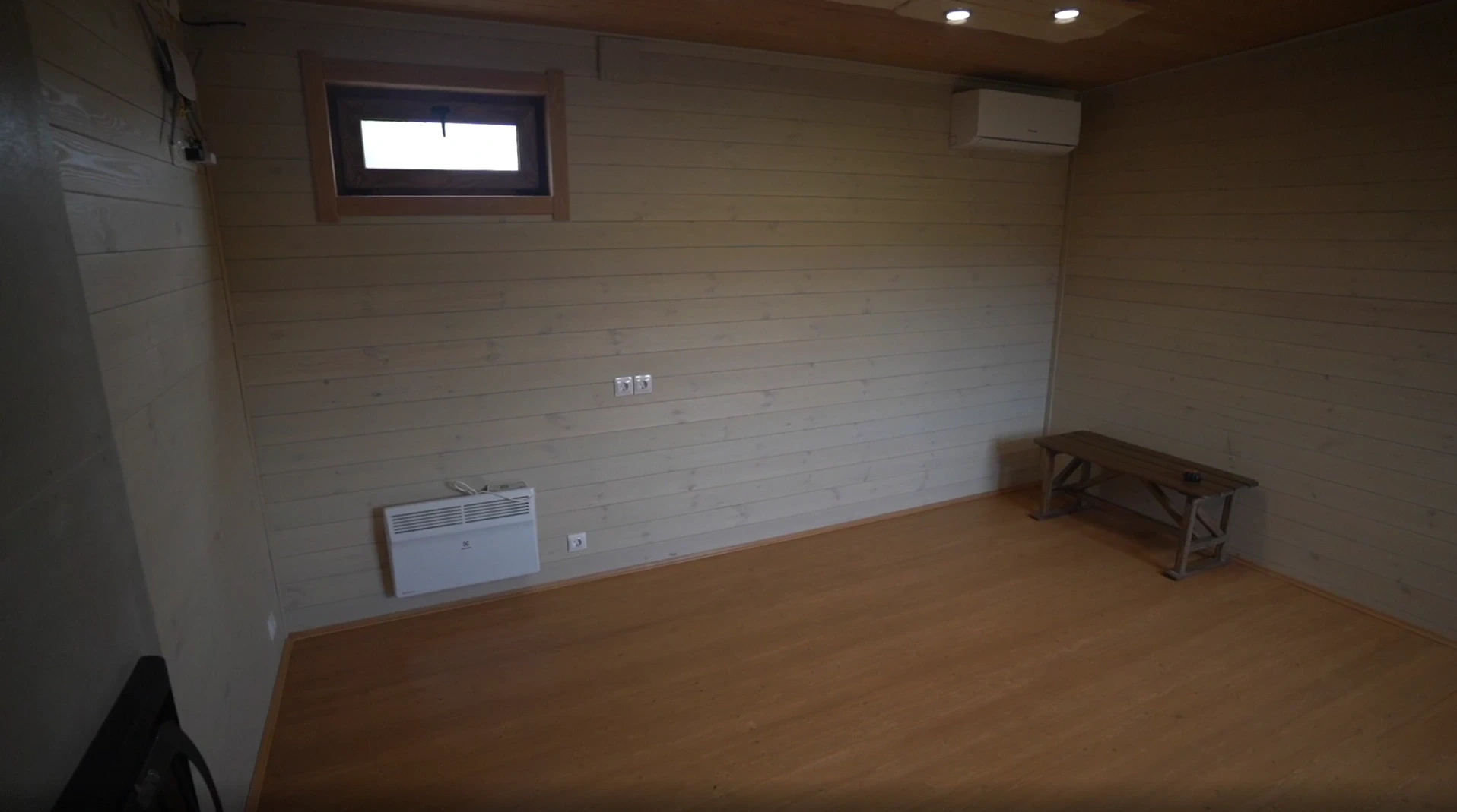В данной комнате будет размещён кухонный гарнитур. Для поддержания комфортной температуры в летний период, установлен кондиционер. Для обогрева используются электрические конвектора.