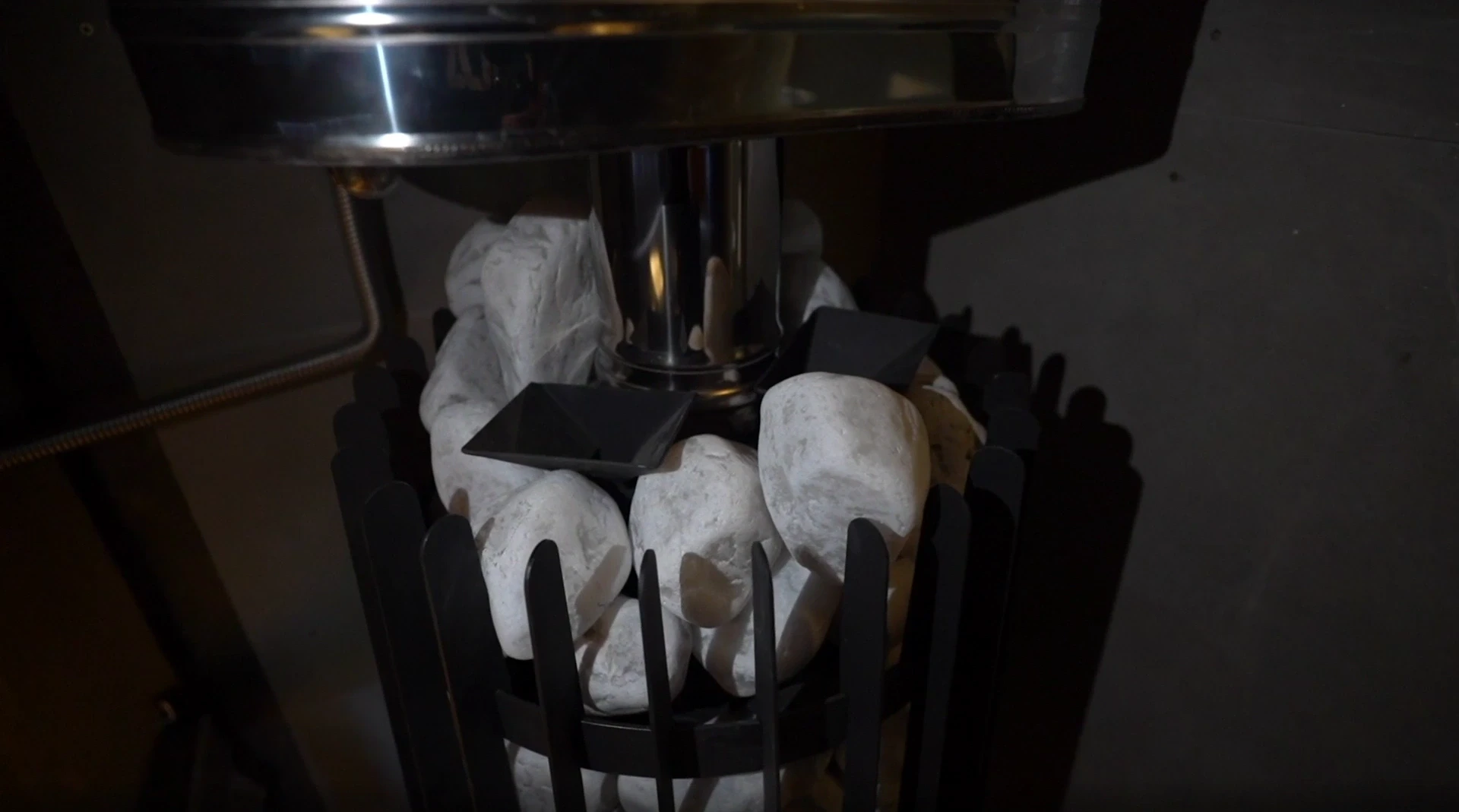 Печь установлена с двойной каменкой: наружней и внутренней. Данная печь позволяет напонить пространство мягким и “вкусным” паром и превратить процедуру парения в настоящее удовольствие и раслабление.